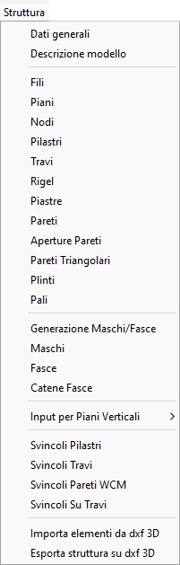 Con il menù struttura è possibile creare la struttura da analizzare. Il menù contiene i seguenti comandi: